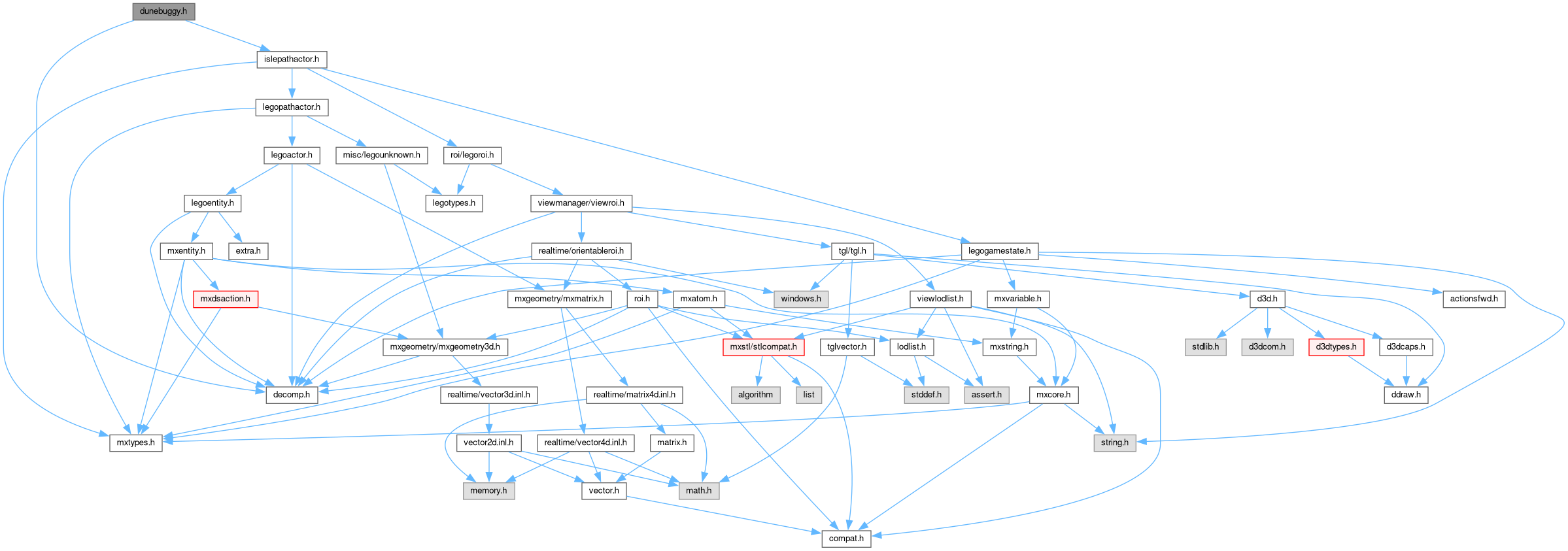 Include dependency graph for dunebuggy.h: