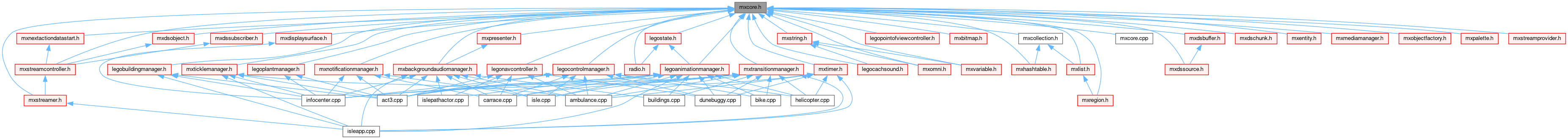 Include dependency graph for mxcore.h: